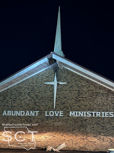 Abundant Love Ministries, located at the intersection of Shelbyille Street and Loop 500 in Center, was called in by a passer-by as being on fire September 18, 2025, when the caller stated that the outside of Abundant Love Ministries church was on fire.