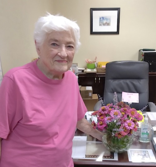 October 20, 2025 - Community Beautification is one of Center Garden Club's annual projects. Each month from September through May, club members will present local institutions, businesses, and other entities with a complimentary floral design or plant. Pictured is member Janette Wittmann who in September presented her floral design to the First Baptist Church office. Center Garden Club looks forward to sharing Nature's beauty throughout our community during the 2025-26 year.