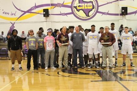December 13, 2016 - Before the Center Roughrider boys varsity game, Kevin Jones and Jeff Boyd with Center Motor Company recognized Kyle Parks as the Class 4A, Week 10, Built Ford Tough Player of the Week on December 13, 2016. Jones presented Parks with his plaque and Boyd presented Athletic Director Barry Bowman with a second plaque for the school.