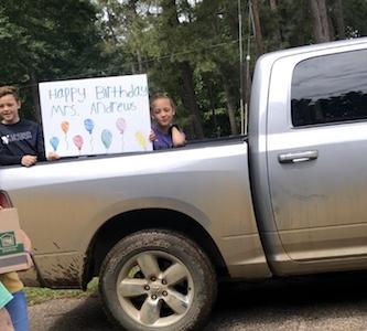 CMS teachers created a drive by birthday celebration on Monday, April 20th for 8th grade teacher Gladys Andrews. Andrews described her surprise, "My CMS friends circled my driveway, horns blowing, waving posters and leaving a big box of goodies. It was a birthday I will never forget. CMS teachers are the best."