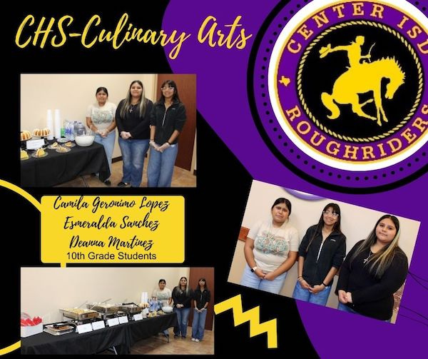 January 15, 2026 - Center High School Culinary students were proudly recognized at the CISD School Board Meeting for their outstanding work. They treated our Board of Trustee members to a delicious pasta bar, showcasing their skills, professionalism, and creativity. We are so proud of these talented students for representing CHS so well!