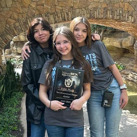 Lyla Snider, Brilyn Williams, and Catalina Escobedo won 5th place in 2D Design (Beta Flag).