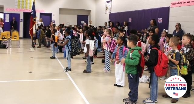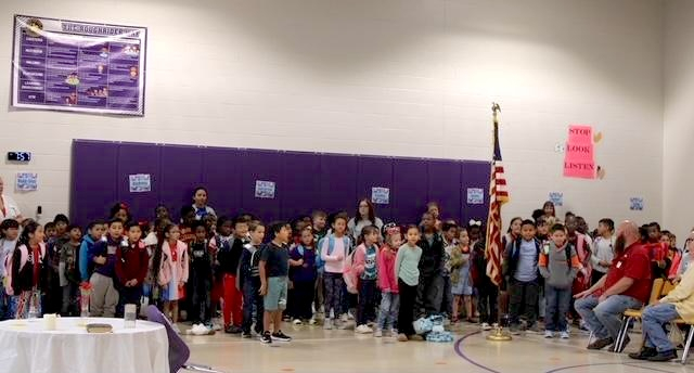 November 14, 2025 - F.L. Moffett students proudly honored local veterans during a special Veterans Day program filled with patriotic songs and heartfelt appreciation. Chief Byndom contributed to the event by bringing a fire truck and flag, adding a meaningful touch to the celebration.