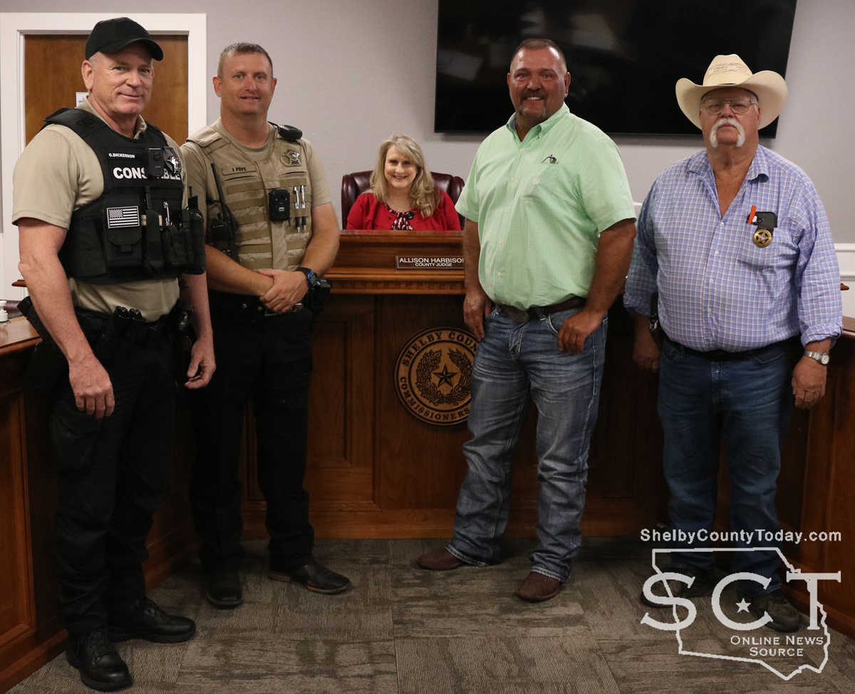 After the commissioners approved appointing Rowdy Green to the Constable Precinct 4 position to fulfill the term ending on December 21, 2028. Shelby County Judge Allison Harbison administered the oath of office to Green during a swearing in ceremony.