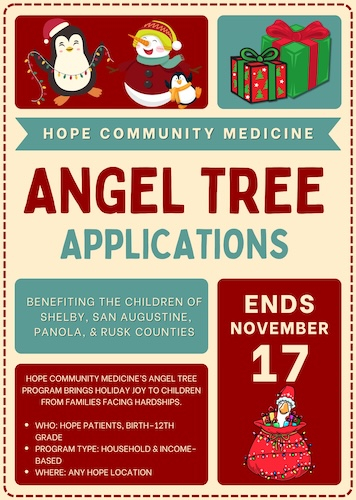 November 6, 2025 - Don’t let the deadline slip by! Angel Tree applications are still open — stop by any HOPE clinic to pick yours up today!