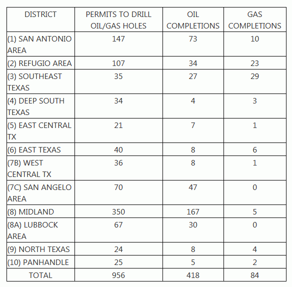 For additional drilling permit and completion statistics, visit the Commission's website at http://www.rrc.texas.gov/oil-gas/research-and-statistics/well-informatio....