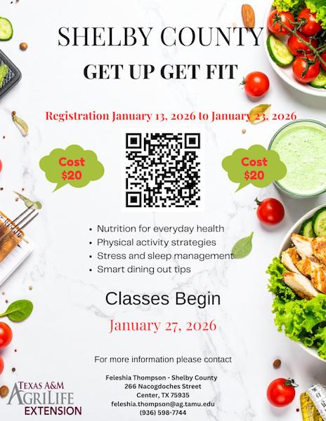 For details or to register, contact the Shelby County Extension Office at (936) 598-7744 or email feleshia.thompson@ag.tamu.edu.