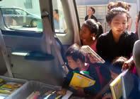 We went to 7 different neighborhoods and reached 85 kids. There were 132 books checked out on the first day! I can't imagine what next week and the weeks to come will be like.