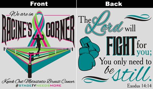 March 7, 2016 - Family and friends are raising money for Racine Graves with a T-Shirt fundraiser to help with medical expenses - "We are in Racine's Corner, Knock Out Metastatic Breast Cancer".