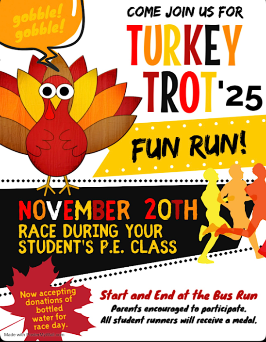October 30, 2025 - Make Plans to Attend the 2nd Annual Turkey Trot Fun Run at Tenaha ISD - Students and Parents Thursday, November 20th.
