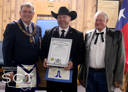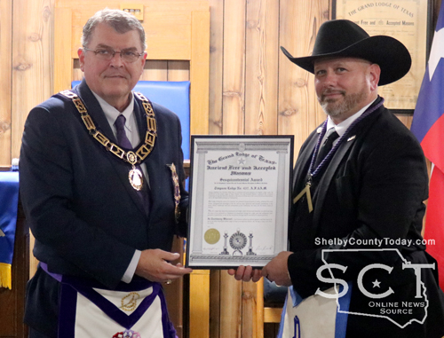 Raborn L. Reader, Grand Master Mason of Texas, then presented Timpson Lodge 437 with a sesquicentennial award in recognition of their achievement.
