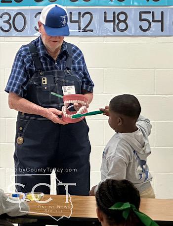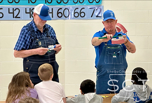 Masons Judd “Tuffy” Green and Leslie Gill spoke with the students about the importance of maintaining their teeth and how to take care of their them.